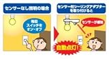 ELPA 人感センサー+明暗センサー付シーリングアダプター SA-26HAJB ![]() 価格: 3,480円 レビュー評価: レビュー数: 周囲が暗い状態で人が近づけば『パッ』と自動で点灯。 離れれば約3分・約5分後(切替スイッチにより)に消灯します。 入力電圧:AC100V 50/60Hz 最大負荷:白熱灯 60W迄 蛍光灯 22W迄 タイマー保持時間:TEST・・・3〜6秒 短・・・150〜210秒 長・・・260〜340秒 動作温度範囲: -10〜50℃ 対応口金:E26(ソケット部) 天井についている引掛シーリングに直接差し込むだけで白熱電球・電球形蛍光ランプが人体感知センサー付器具として使用可能です。 タイマー切替スイッチで消灯時間の変更ができます |